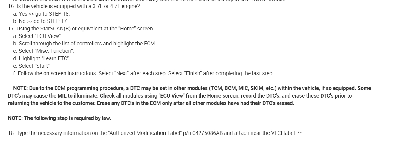 The next concern has to do with the failure of the engine to stay running unless the accelerator is held down. That is real common on Chrysler products after the battery is disconnected, and in fact, a fault code referring to that was listed. The Engine Computer needs to relearn a lot of data after the battery is reconnected. Most of that occurs while you're driving without you even noticing, ... Except for "minimum throttle". Until that is relearned, the Engine Computer will not know when it has to be in control of idle speed. The engine may not start unless the accelerator pedal is held down 1/4", you won't get the nice idle flare-up to 1500 rpm at start-up, and it will tend to stall when coming to a stop.
