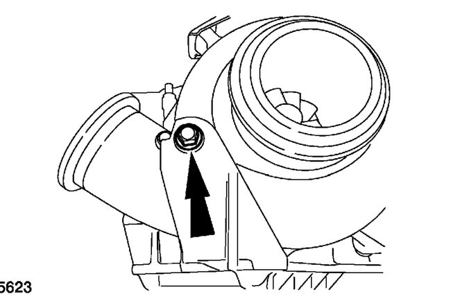 15. Position the turbocharger and remove the turbocharger drain tube.