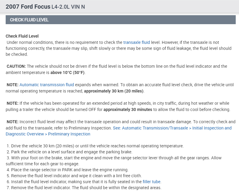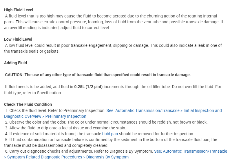 I have attached the transmission fluid check as well as drain and fill procedure below.