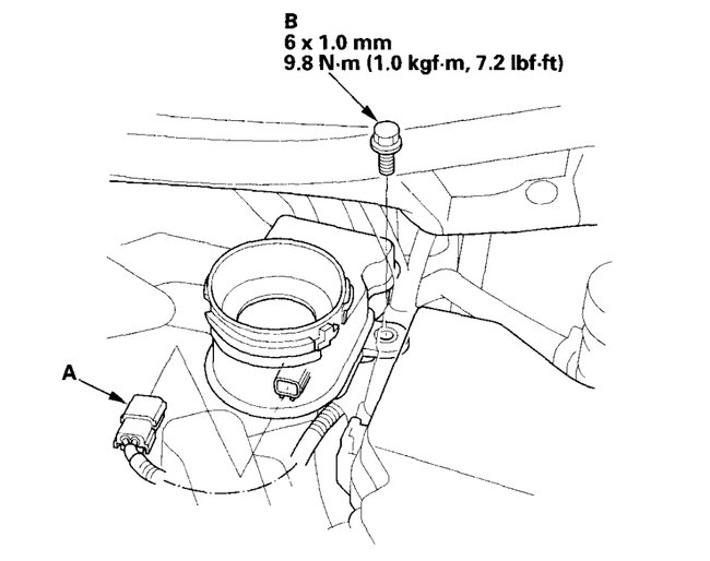 5. Disconnect the brake lines (A) from the master cylinder (B). To prevent spills, cover the hose joints with rags or shop towels.