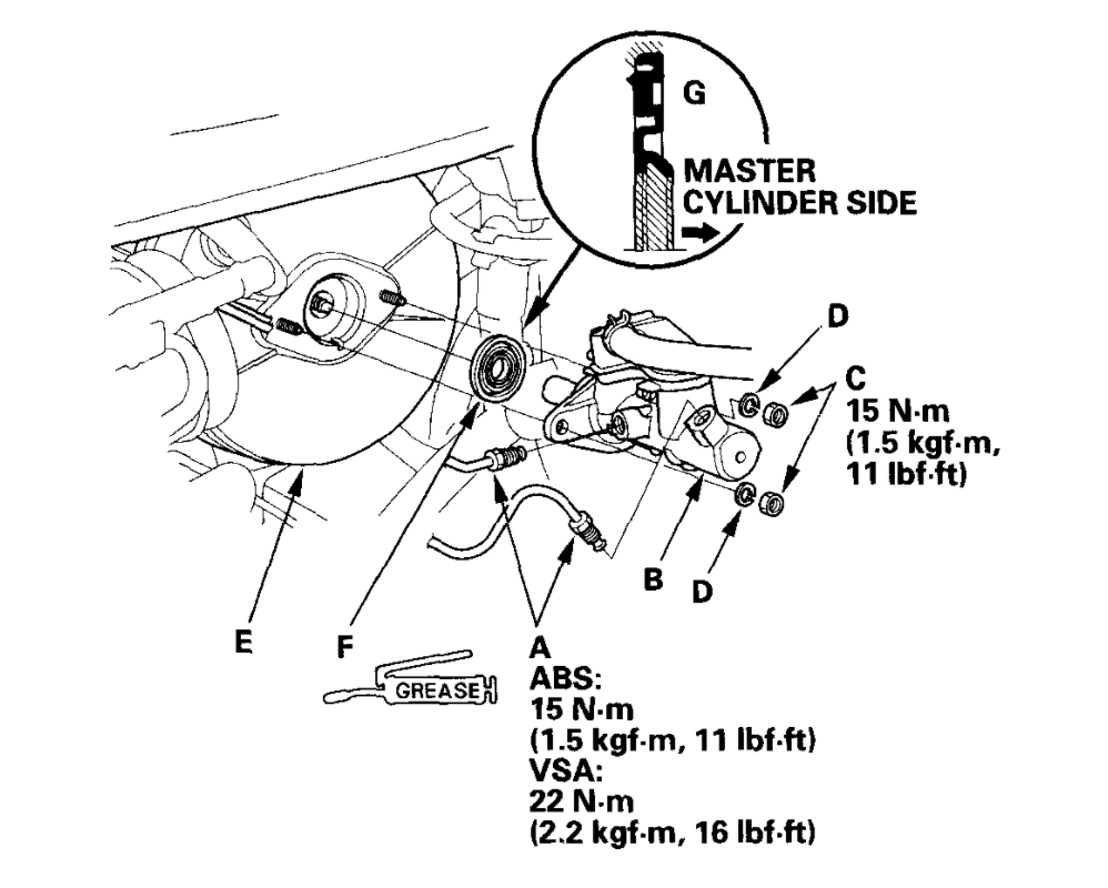 NOTE: During installation, set the new rod seal onto the master cylinder with its grooved side (G) toward the master cylinder.