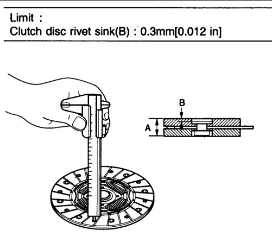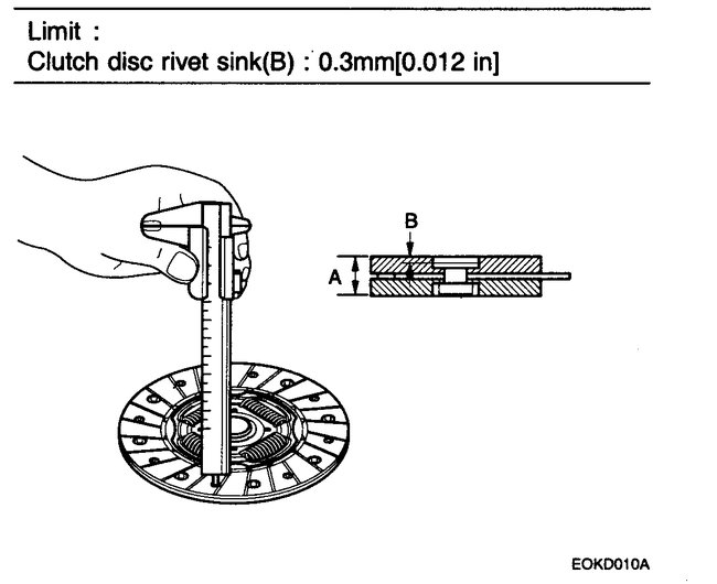 1. Check the clutch facing for loose rivets, uneven contact, deterioration due to seizure, adhesion of oil, or grease, and replace the clutch disc if defective.