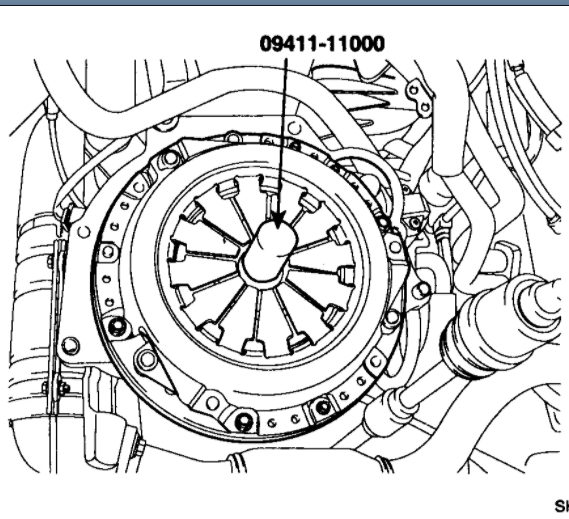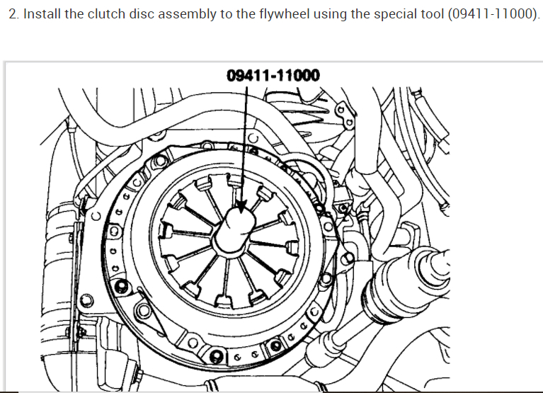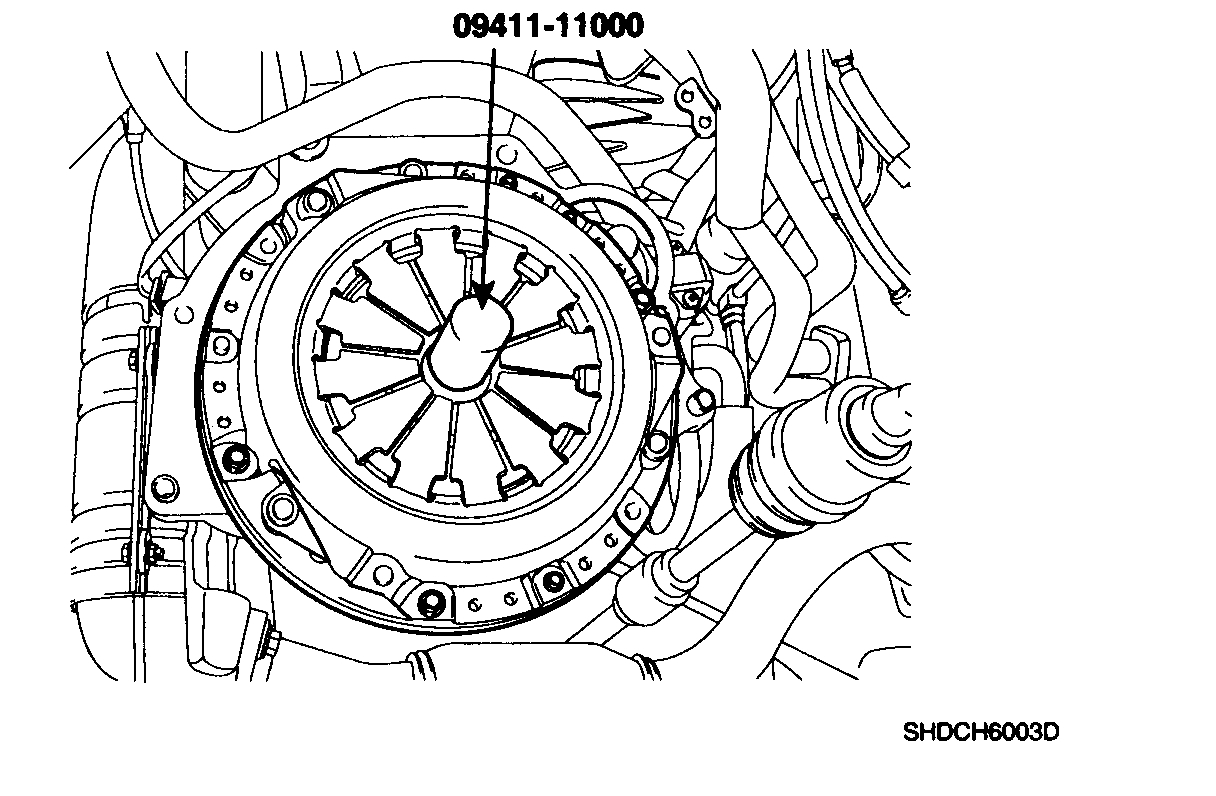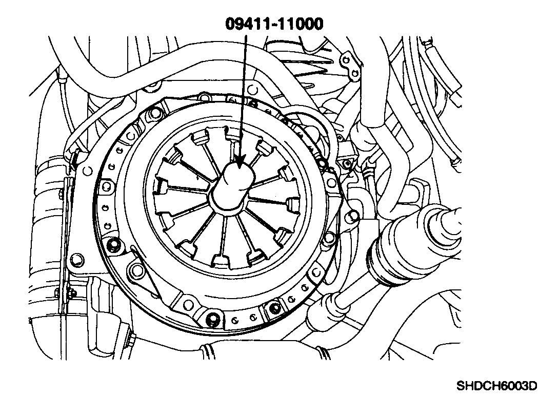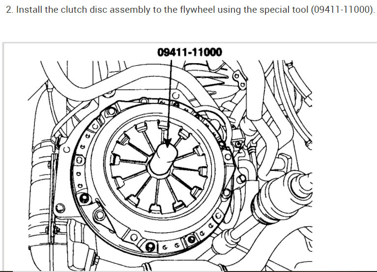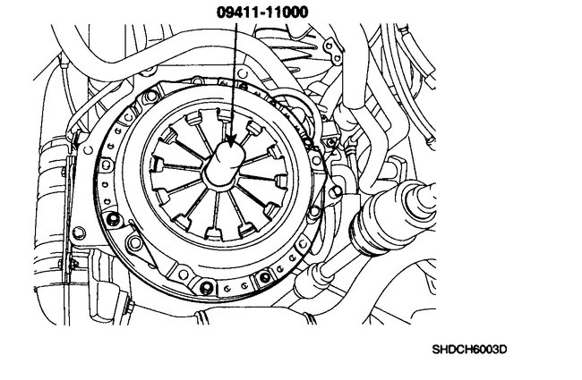 2. Install the clutch disc assembly to the flywheel using the special tool (09411-11000).