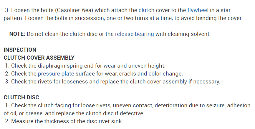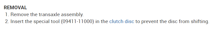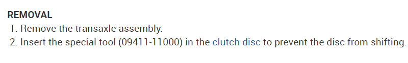 Here are the directions for replacing the clutch disc on this vehicle. The attached pictures correlate with the directions.