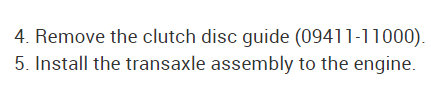 5. Install the transaxle assembly to the engine.