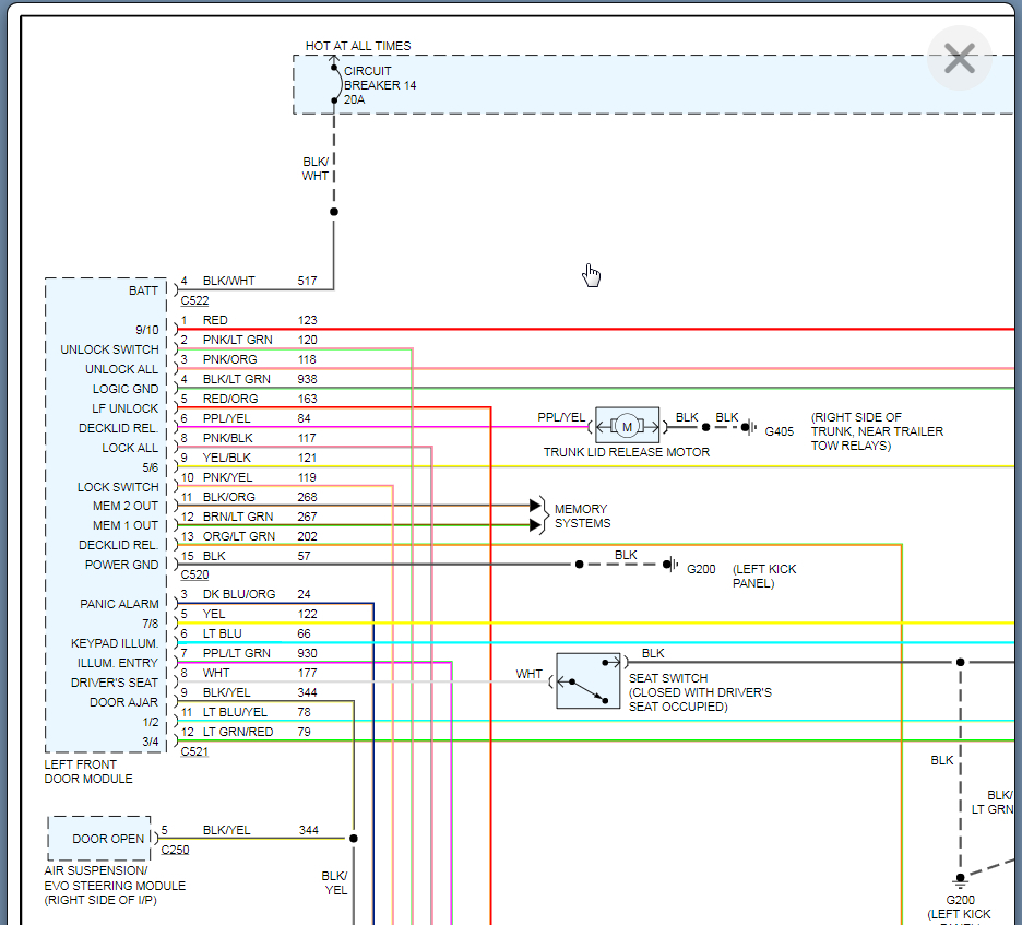 The problem now is the door locks, outside mirrors, power seats and trunk closer do not function.