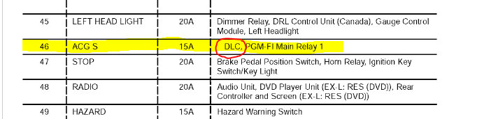 Earlier it was not accelerating when pushed the gas pedal and it was parked. It had the VSA comes once start driving. While trying to clear the code manually with the pin in obd2 4 and 9, I reversed and used 5 and 16. Not sure if this has blown any fuse or relays but now the car cranks but not starting. OBD2 not powering up either. I was not able to find any fuse related to OBD2 but the cigarette lighter works, headlights work. Browsing through videos to figure out if fuel pump or PGM-FI relays are bad. Any guidance greatly appreciated.