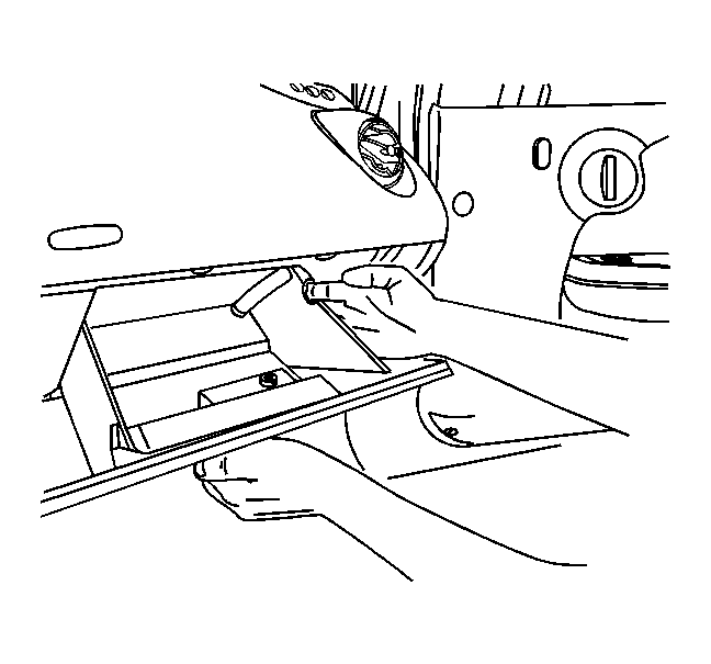 Tilt the instrument panel compartment door down by squeezing in on each side of the bin until the door stops can be removed from the tracks.