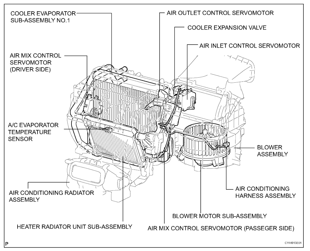 This servomotor moves the air-flap located near behind the cigarette lighter to select between air blowing through the A/C Evaporator or air blowing through the heater core.
