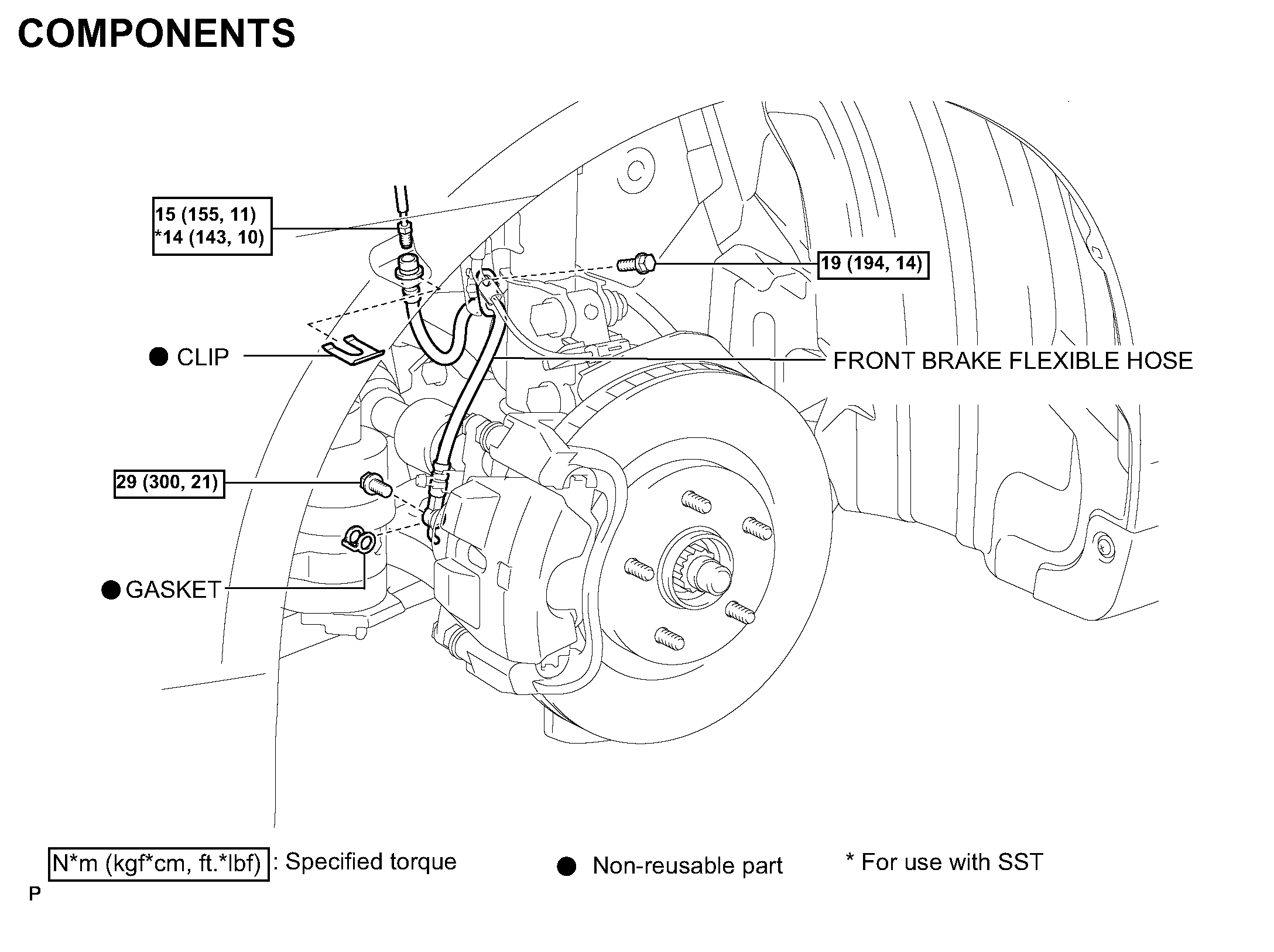 - When installing the front brake flexible hose, face the identification mark toward the exterior of the vehicle and minimize twisting of the hose.
