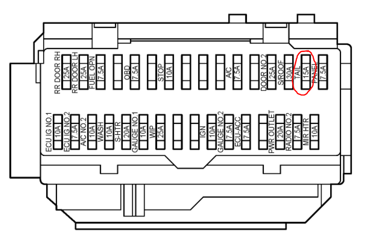 Here is a guide to help you test the fuses and the location of the fuse with the tail light wiring diagrams so you can see how the system works. There is a tail fuse (interior panel) and a tail relay