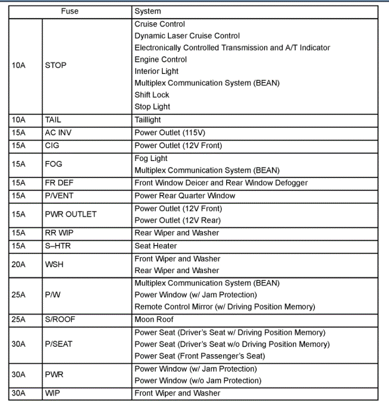 If you look at the attachments below, they provide the fuse box orientations and what each fuse is for.