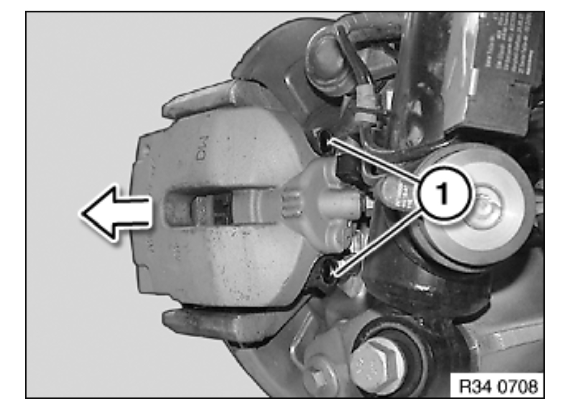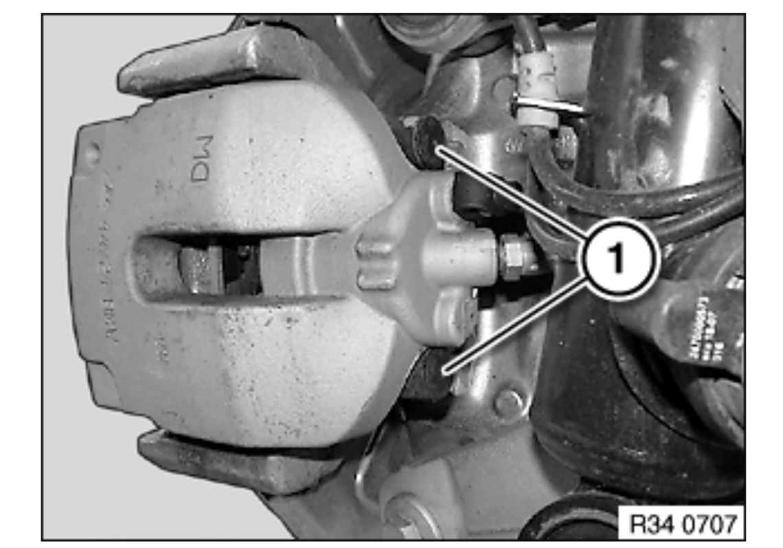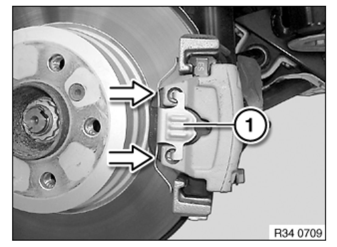 So as not to damage the surface coating, if possible do not mechanically clean the guide surfaces for the brake pads on the brake caliper mounting bracket, but rather clean with brake cleaner BMW TI. number 83 19 2 154 780 and apply a thin coating of break pad paste BMW TI. number 83 19 2 158 851 (3 gr.) or 83 19 2 158 852 (100 gr.).