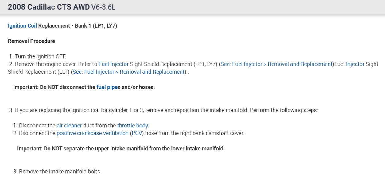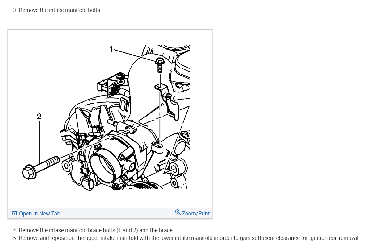 3. If you are replacing the ignition coil for cylinder 1 or 3,  remove and reposition the intake manifold. Perform the following steps: