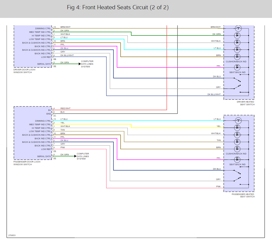 Does this vehicle have heated, and cooled seats? If so, the medium for heat/cool is a thermo-electric device. The chance of all four of these being faulty is rare. Most common concern, is melted terminals from poor connection, at the climate control seat module, under the passenger seat. Pull the connector with the large red/white wire, you will either find it, or the ground terminal melted. From there, the connector, terminal, and module need replaced. It looks like you should still be well under manufacturer warranty, you could let the dealer fix it.