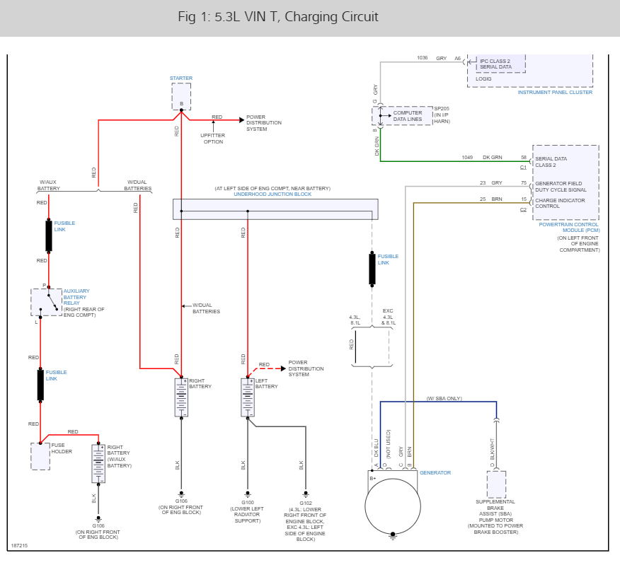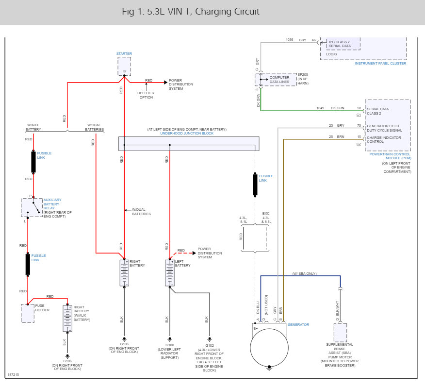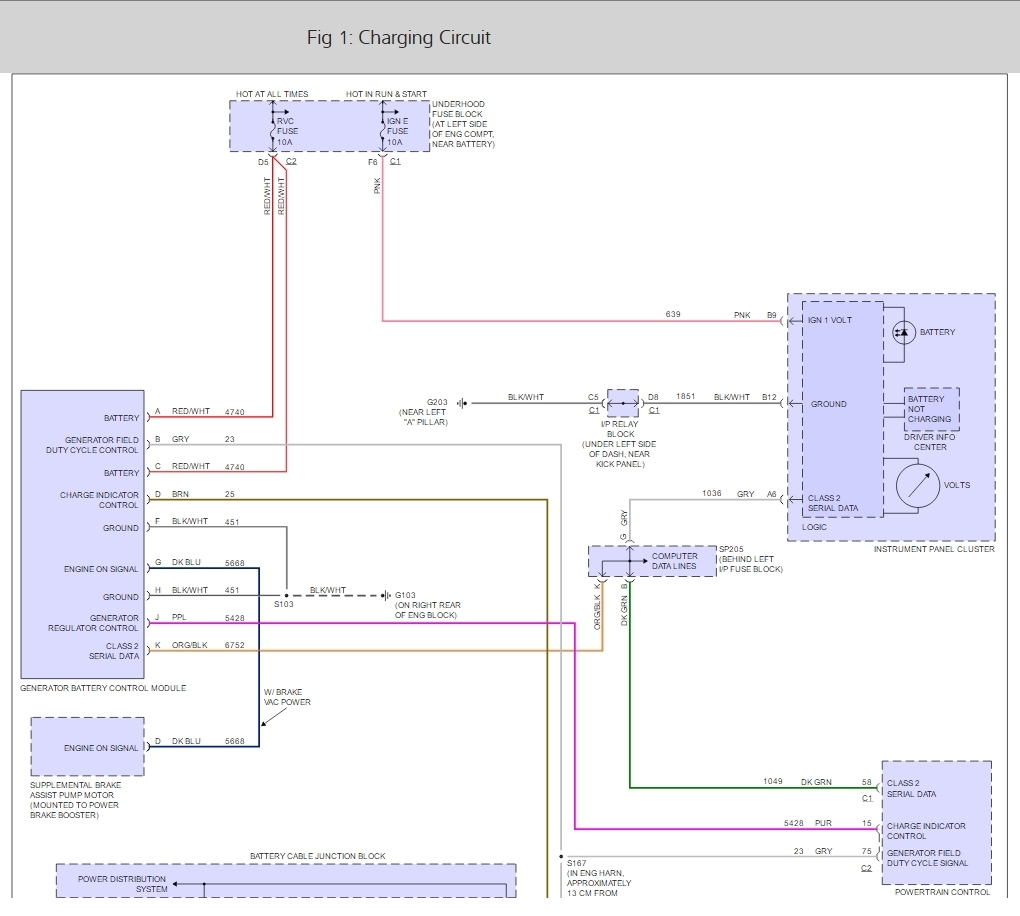 There is a battery/alternator control module that might be bad, I have included some wiring diagrams so you guys can start looking and testing to make sure there is 12 volts where there should be.