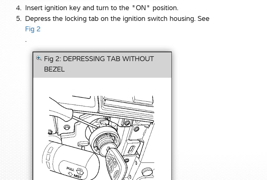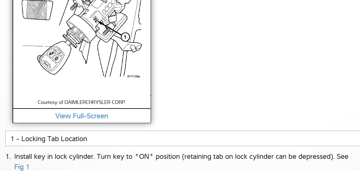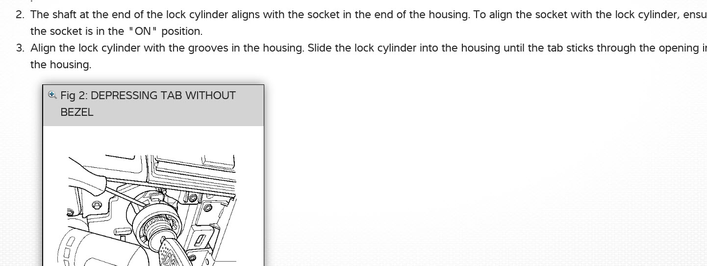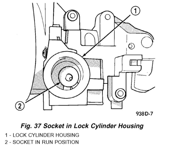A tab on the ignition switch indexes to a notch in the lock cylinder housing. Also, a slot in the end of the ignition switch fits over the shaft in the end of the lock cylinder housing. Use the ignition key to rotate the lock cylinder to align the ignition switch with lock cylinder housing.