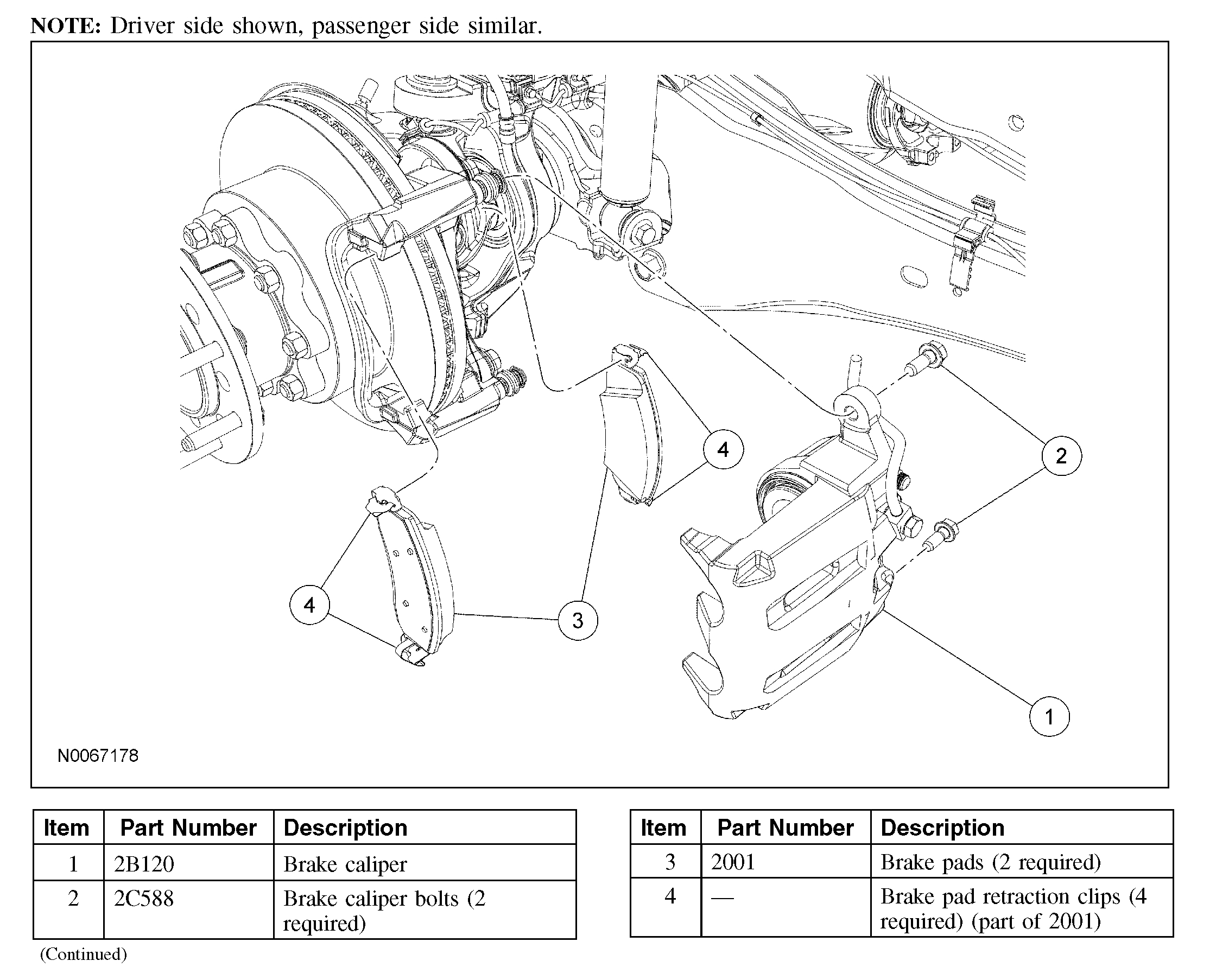 NOTE: If installing new brake pads, install all new hardware as supplied with the brake pad kit.