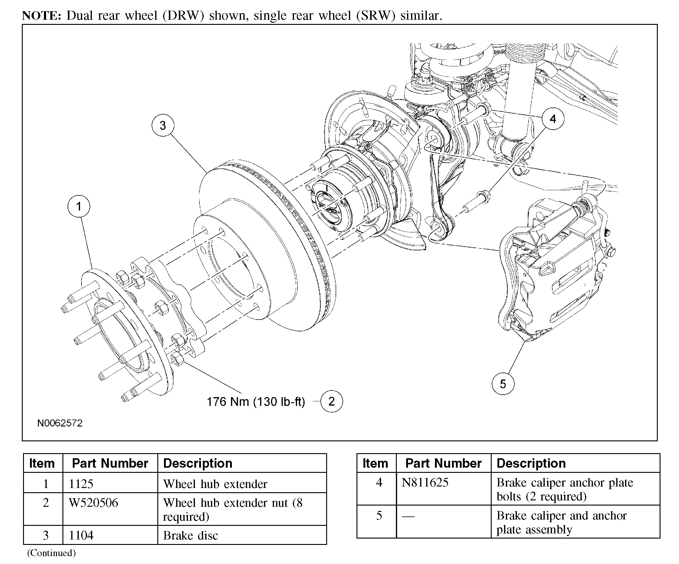 On F-450, F-550, tighten to 63 Nm (46 lb-ft).