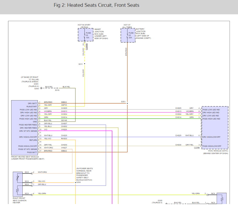 I have a 2008 Taurus X. The driver side seat heater will not work. The passenger side does work. When you push on the heater button, the indicator light comes on for an instant and then goes out. I have held the button in for an extended period and it still doesn't heat. Thanks for any help. Bill