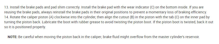 Here is a YouTube video from our site on how to compress the rear caliper piston when performing a rear brake job.
