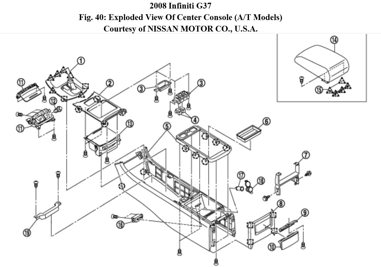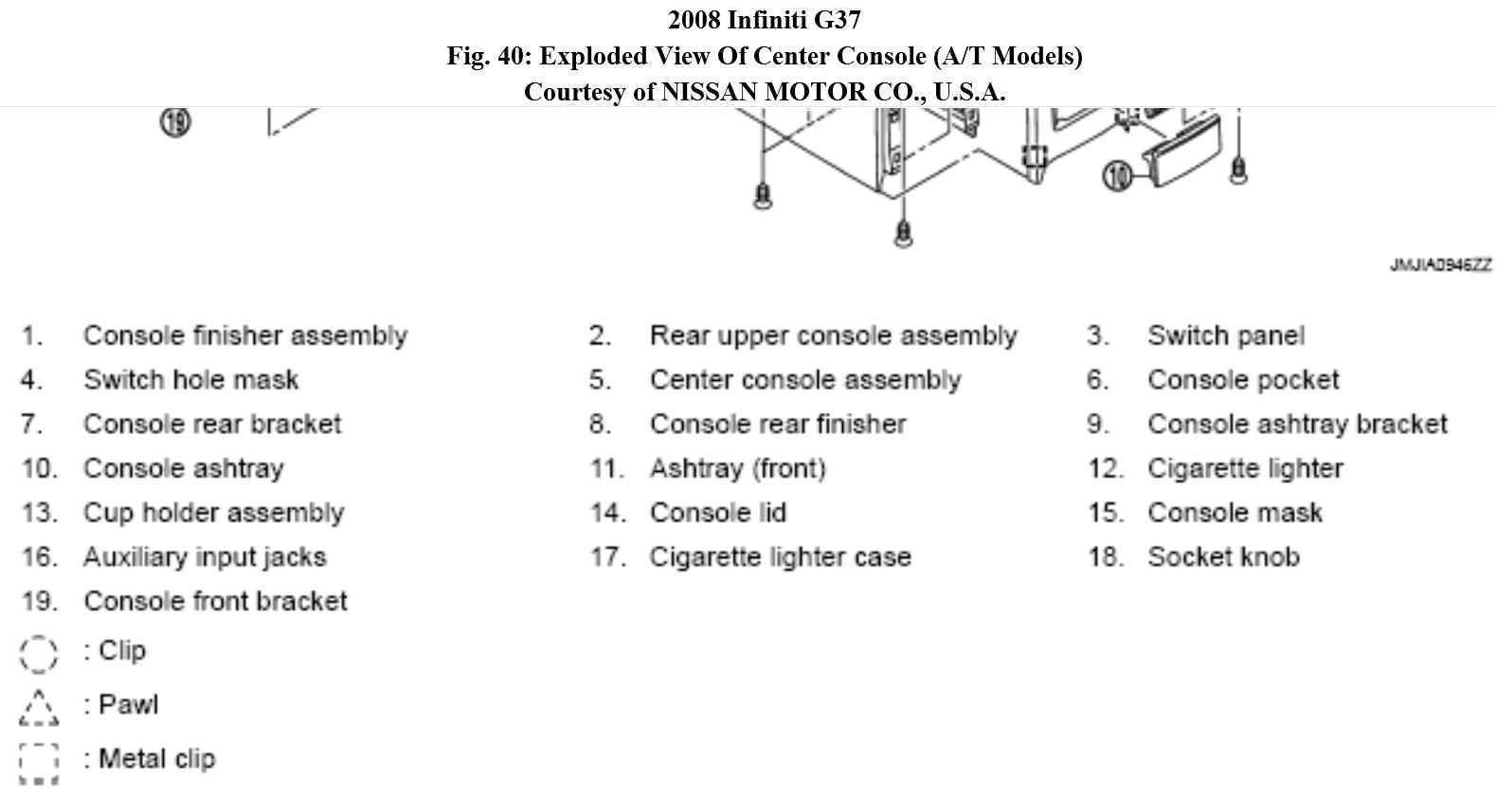 DISASSEMBLY OF CENTER CONSOLE (A/T MODELS) Check the diagrams below.