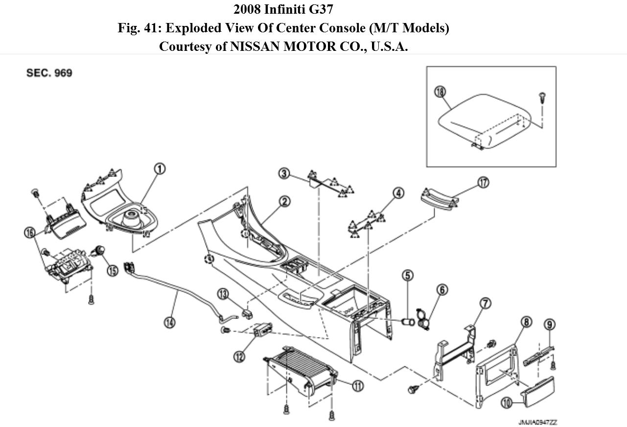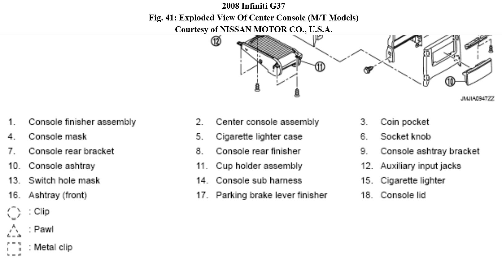 DISASSEMBLY OF CENTER CONSOLE (M/T MODELS)
