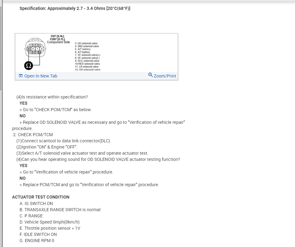 So, we are going to need to run through the testing of this individual solenoid in the pack. Here is a guide that will help with this type of testing:
