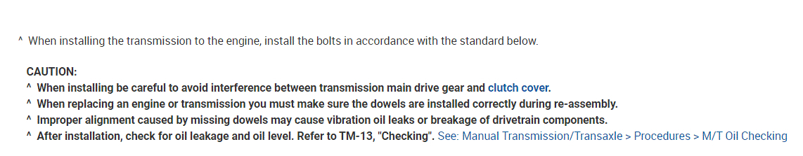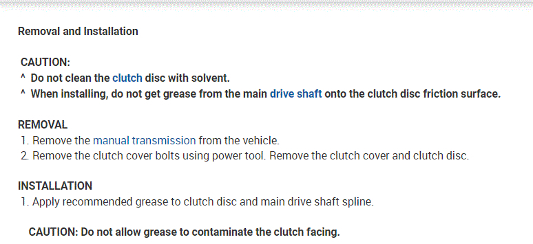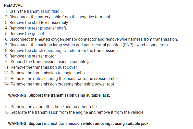 If you look at the attachments below, they provide the directions specific to your vehicle for transmission removal, clutch and component inspection, and replacement.