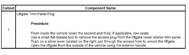 The unlock button will not work at the drivers door only. The lift gate will not open, even when you unlock the car. Is there a place inside the vehicle that will allow me to open the lift gate from inside the car?