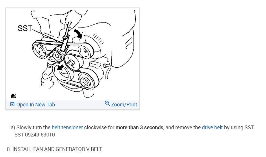 This car has a hydraulic tensioner. Toyota has a special tool for this but using a breaker bar with the right size socket will work as well. Since its hydraulic you have to keep constant pressure on it until it collapses far enough to remove the belt.