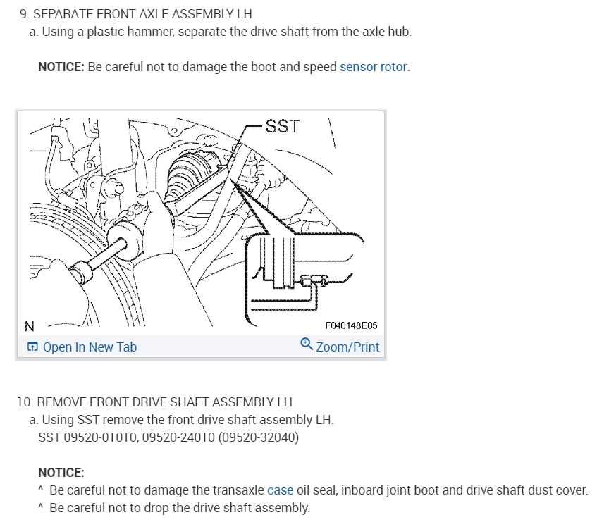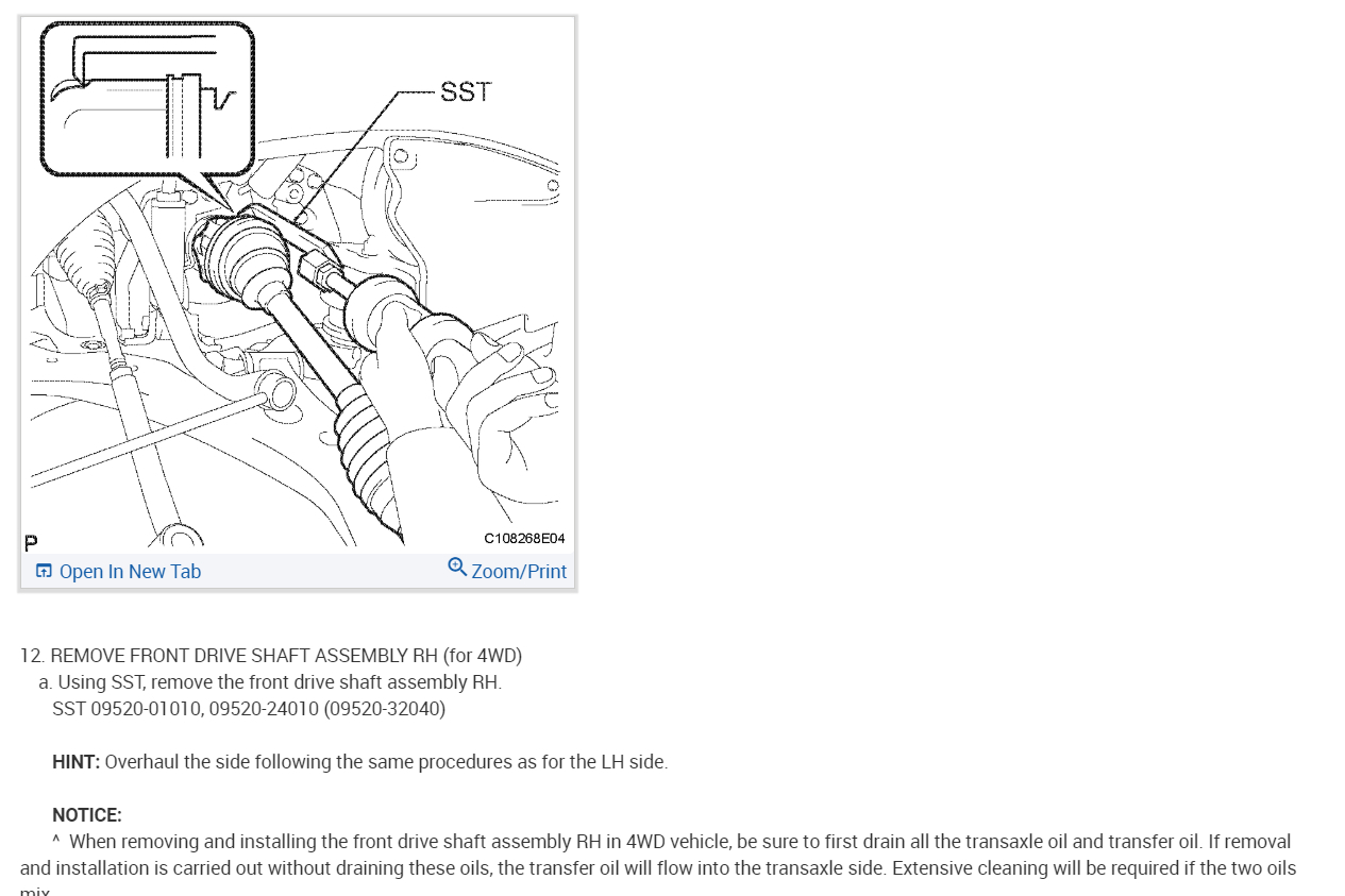 I recently have been working on this 08 Toyota Sienna for a customer of mine and I'm in the middle of changing the cv axle. The old one is out and the new one is ready for installation, but I can't get the cv axle to fully mate with the transaxle. It will go in most of the way but stop at a certain point and leave about an inch of the inner shaft hanging out of the transaxle. I don't wanna sit there and beat on this thing all night and ruin a brand new unit so any advice would be very helpful. I know these cv axles utilize that inner "pop" ring as I have heard it been called where you kinda have to pull and give it a quick pop to get the old one out which worked perfectly. I have worked with these style before in other vehicles and they usually pop right in but this one has been getting to me. Thank you for your help