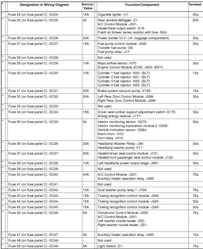 Below are the fuse box details. Please run through this material and let us know if you have questions. Thanks