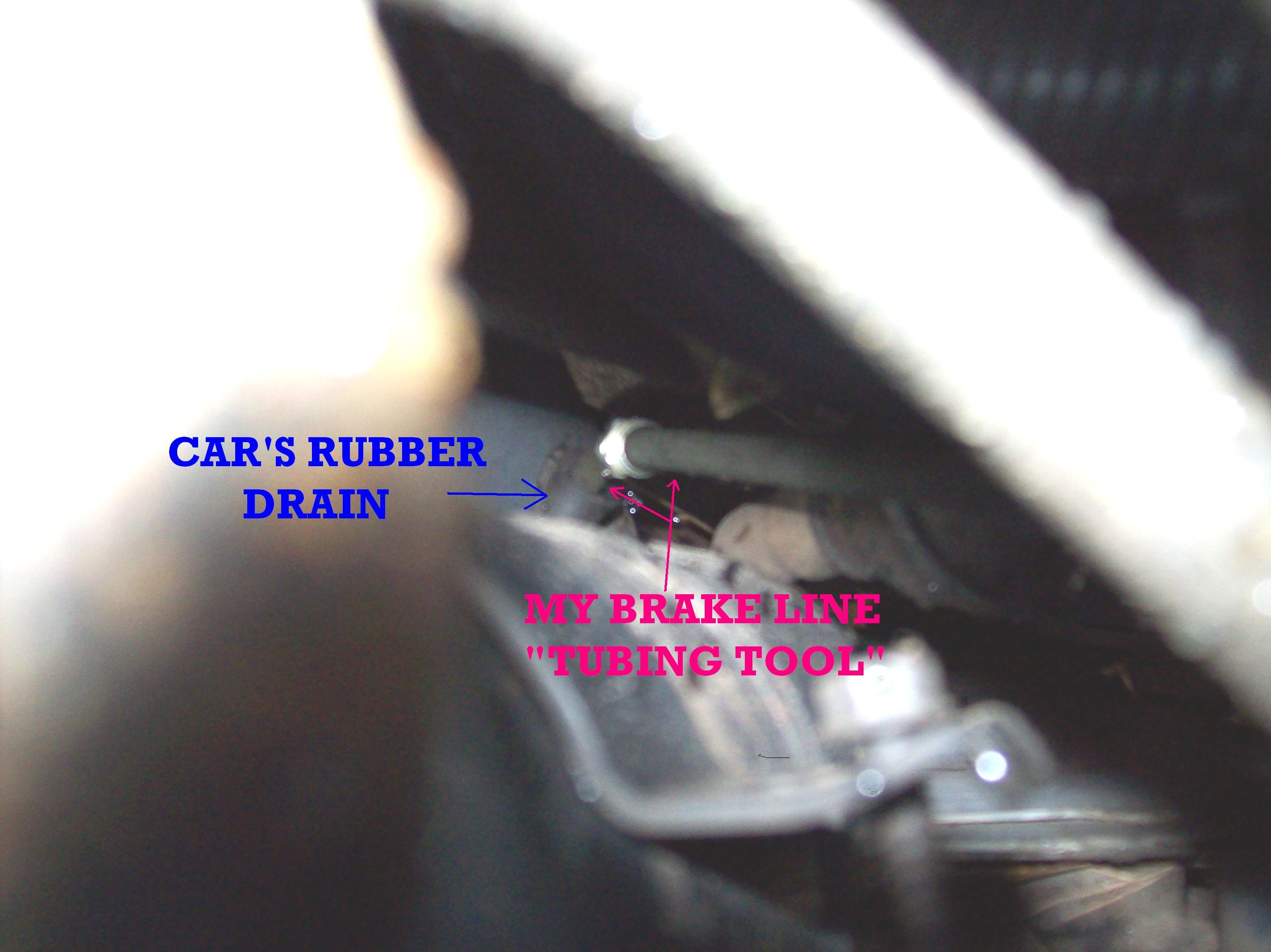 Keep in mind, we are not performing heater box arthroscopic surgery, do not shove it (hose or tube)past the firewall, you may tear or disconnect the car's drain. Then the drain nozzle may leak between the firewall and the A/C box inside.
