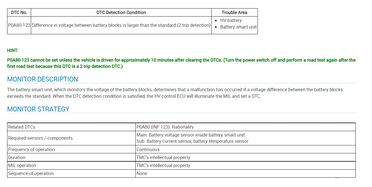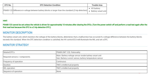 A local independent mechanic shop checked codes and found POA80, which they said needs a new battery pack. They don't have anyone trained to work on hybrid batteries and recommended I find a different independent shop with a specially trained hybrid mechanic or a Toyota dealer. After doing a bit of research (not much makes sense to me) a specialist too far from me recommended I ask if they checked ABS codes as well. After 5:00 pm. So, I took it to O'Reilly, also local, but still open. The only codes O'Reilly found were also POA80 (pending and stored) "checked hybrid system" and ABS code C1365 (1/1) Current, Accumulator Pressure Sensor.