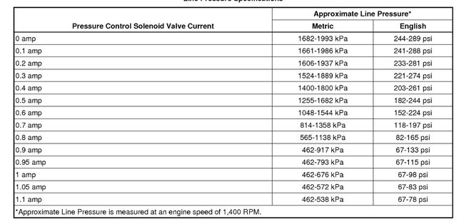 15. If pressure readings differ greatly from the table, refer to Incorrect Line Pressure (See: Automatic Transmission/Transaxle > Symptom Related Diagnostic Procedures > Incorrect Line Pressure).