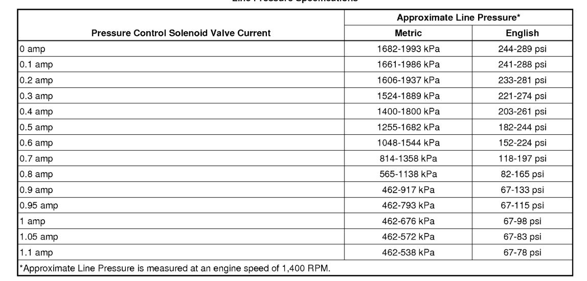 * Before performing a line pressure check, verify that the pressure control (PC) solenoid valve is receiving the correct electrical signal from the PCM.