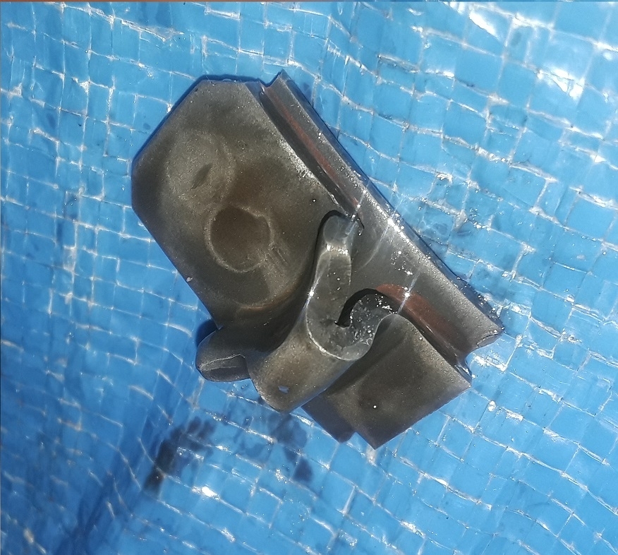 I checked the transmission oil with dipstick and it was still pinkish but darker, with no real burn smell that I could tell. I had read on line that a fluid supply line is known to crack and cause only reverse to work on this car. So I dropped the transmission oil pan and found what is on this picture at the bottom of oil pan. This has to be important? Can anybody help? Thanks