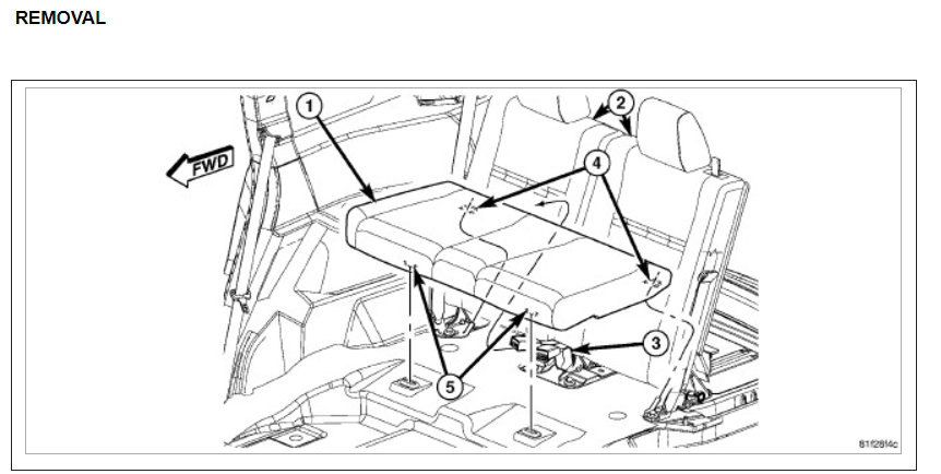 While lifting up on the hooks, pull the seat cushion out towards the front of the vehicle and remove the seat cushion.