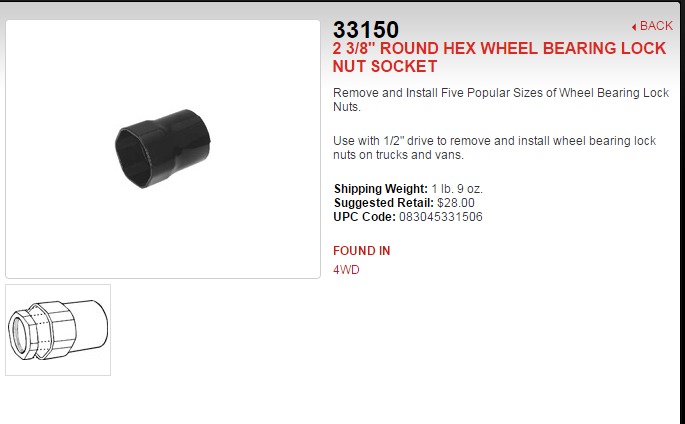 Hi I have a 09 GMC sierra 2500 HD and I was watching your video and need help finding the rear axle nut removal tool. Can you please tell me what brand and part # it is and where I can find one thanks for your help