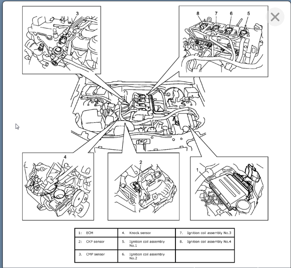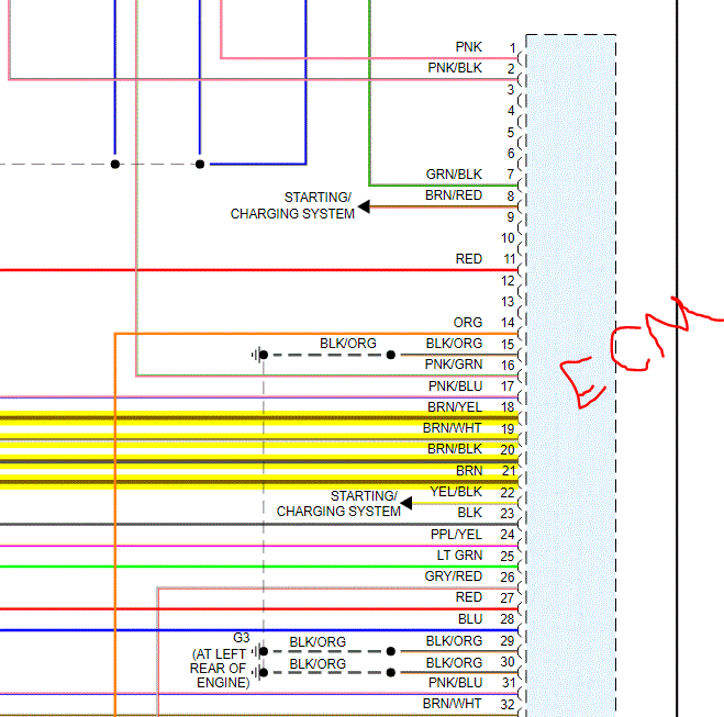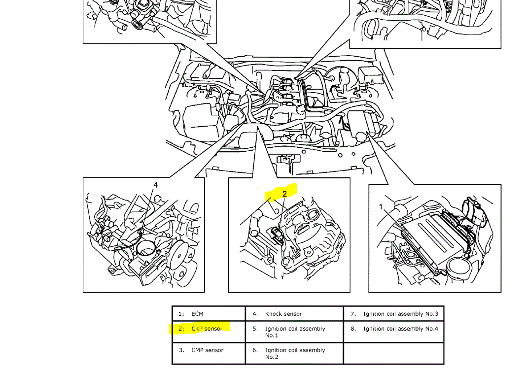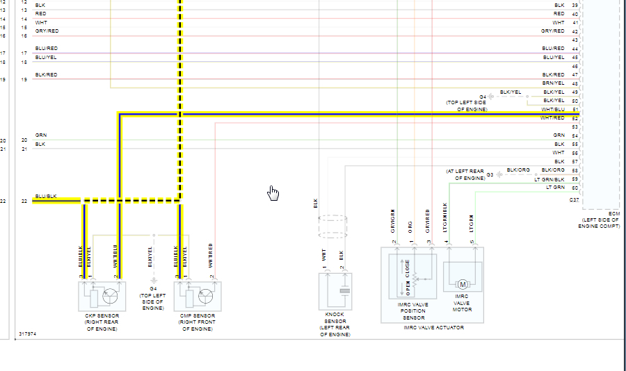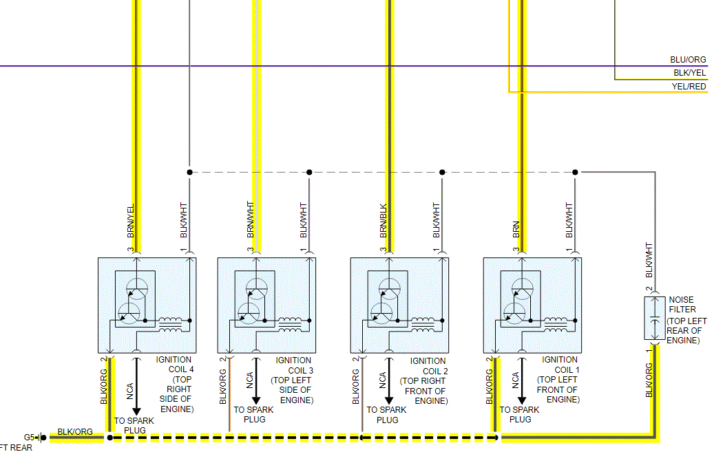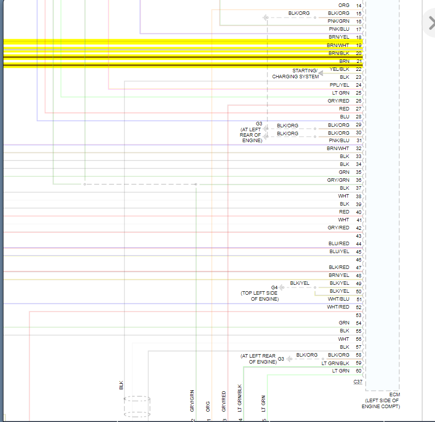 No spark. There are 4, 3 wire coil packs black with white stripe is common on all the coils has 12 v when ignition is switched on black with orange stripe. Also common on all coils has constant ground but the third with has no triggering signal. I’m guessing this is the cause of the no start, but I don’t know what else to check.