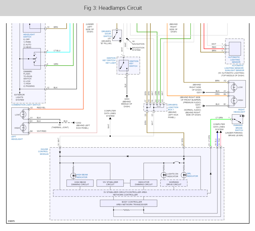 There are 8 fuses #15, #5, #28 and #30 drivers panel. #1 and #4 in the pass panel and # 15 in the under hood (in all three fuses boxes) that run the headlight system we should check those first here is a guide to help with the fuse locations and the diagrams below with the headlight wiring diagrams so you can see how the system works and which fuses to check.