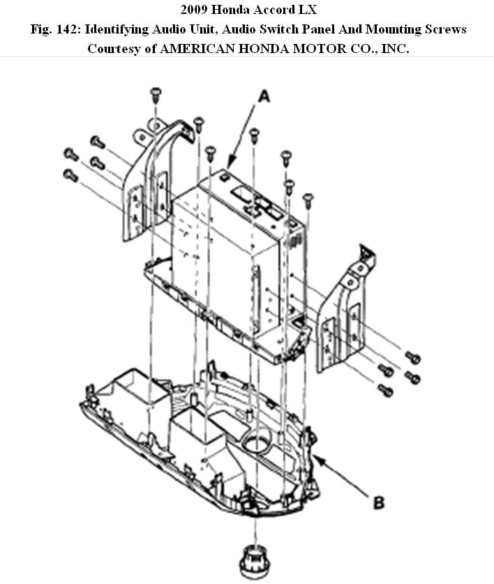 4. Remove the self tapping screws and bolts, then pull out the audio unit (A)
