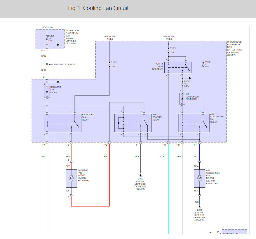 Here are the cooling fan relay locations as well and the wiring daigrams