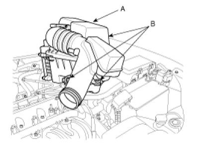 1. Remove air cleaner mounting bolts (B) from the air cleaner mounting bracket and air cleaner body (A).