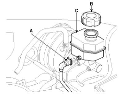3. Remove the brake fluid from the master cylinder reservoir (C) with a syringe.
