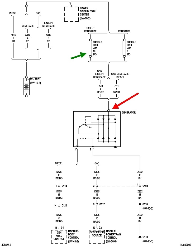 The generator is belt driven by the engine using a serpentine type drive belt It is serviced only as a complete assembly. If the generator fails for any reason, the entire assembly must be replaced.