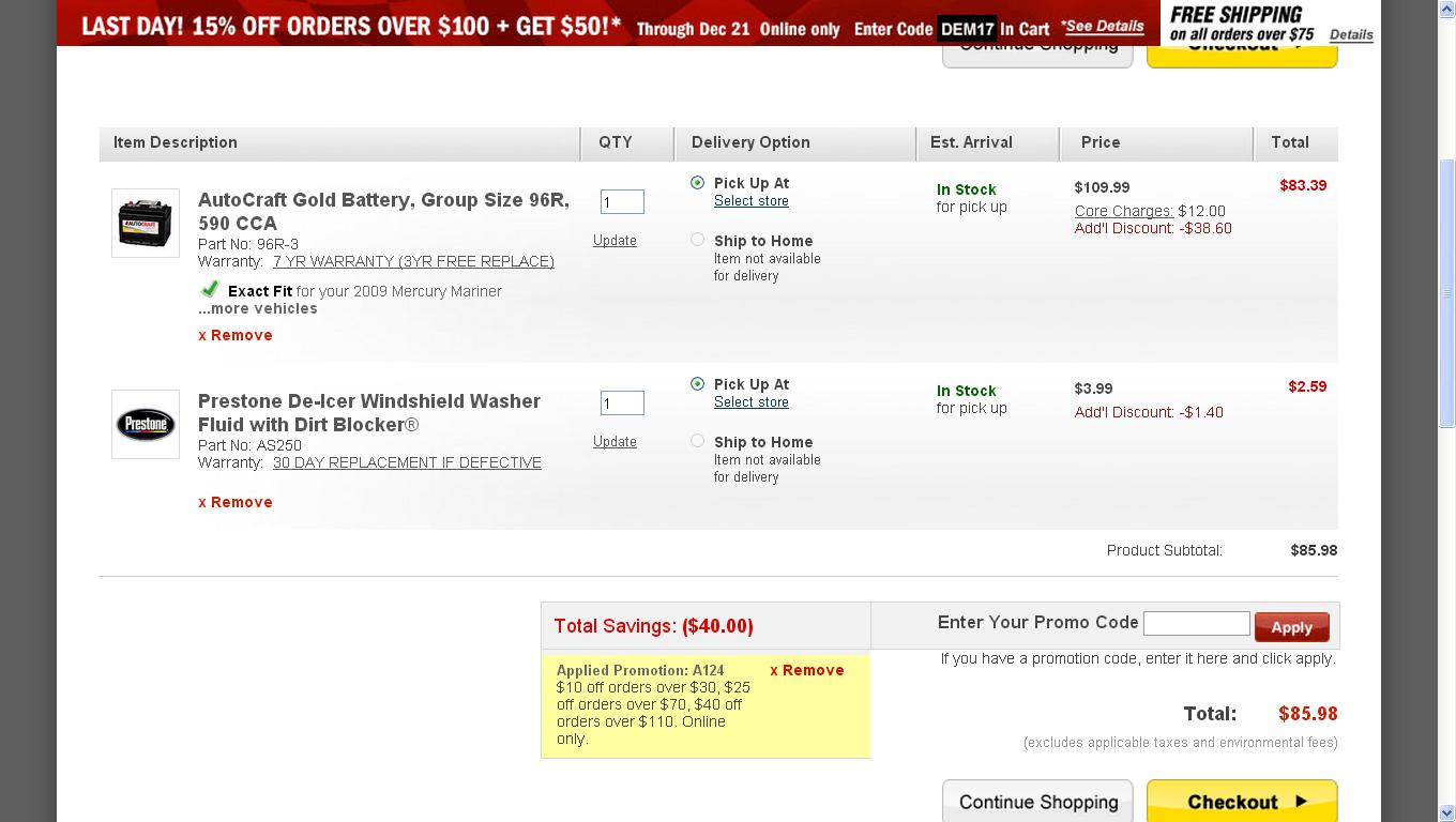 THE advanceautoparts.com SITE USUALLY PROVIDES A PROMO CODE YOU CAN USE AT THE TOPIT CAN USUALLY BE BEAT!---LIKE THIS TIME!