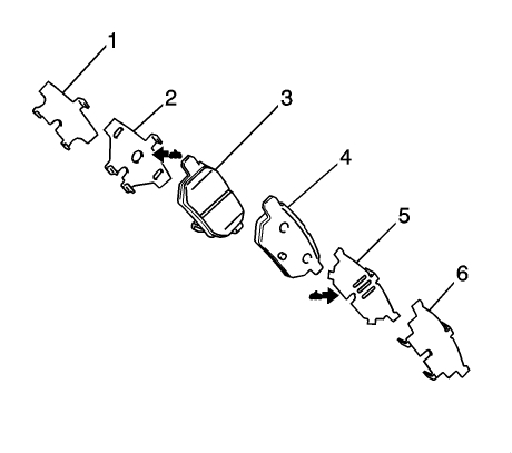 Remove the insulators (1, 2, 5, 6) from the pads (3, 4).
