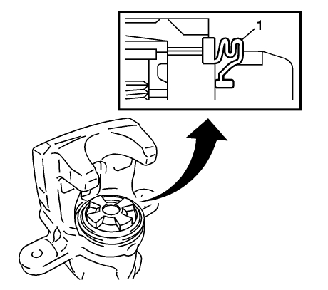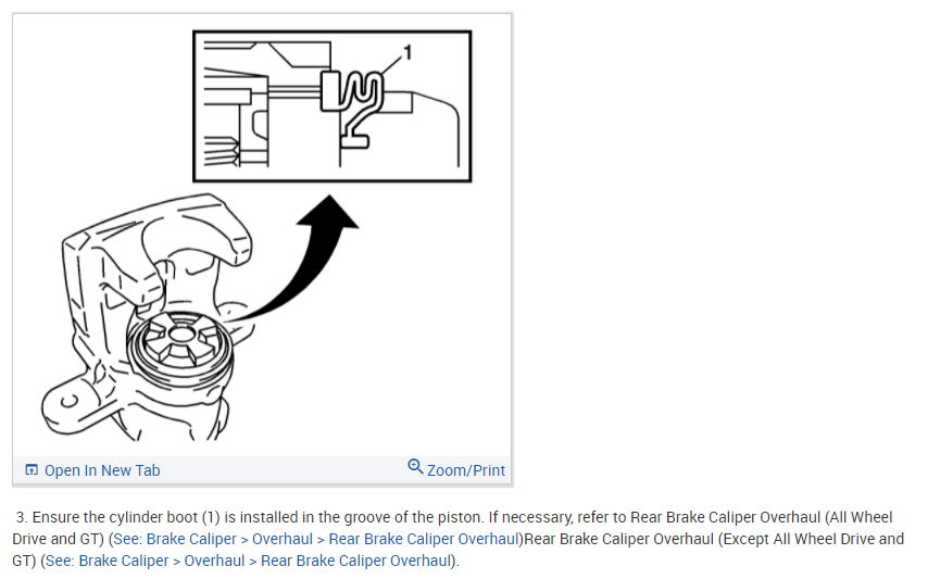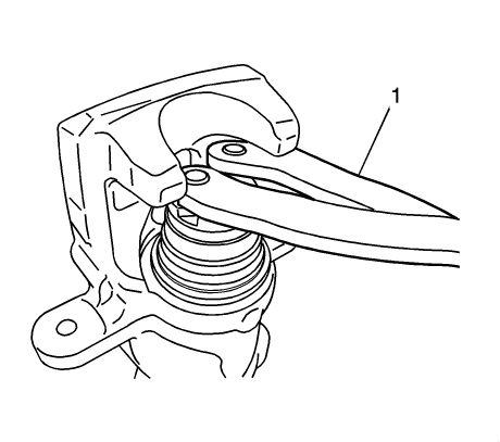 Ensure the cylinder boot (1) is installed in the groove of the piston. If necessary, refer to Rear Brake Caliper Overhaul (All Wheel Drive and GT) (See: Brake CaliperService and RepairOverhaulRear Brake Caliper Overhaul)Rear Brake Caliper Overhaul (Except All Wheel Drive and GT) (See: Brake CaliperService and RepairOverhaulRear Brake Caliper Overhaul).